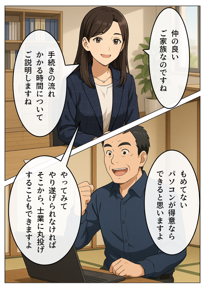 全部依頼:費用は上がるが、心理的負担が最小。期限管理も任せやすい