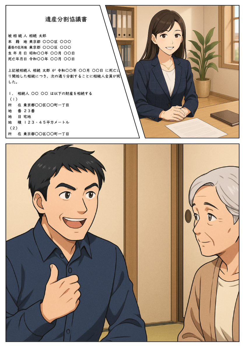 必要に応じて、提携の司法書士への依頼で、協議書作成や登記手続きのサポートもご依頼いただけます。(有料)